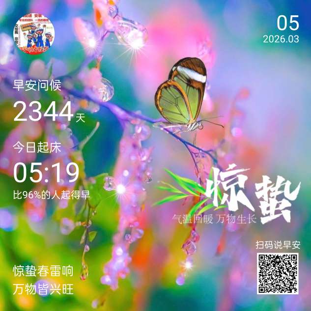 惊蛰春雷响,万物皆兴旺!愿你也如这春日万物,朝气蓬勃,充满希望!早安