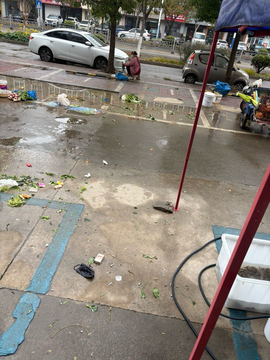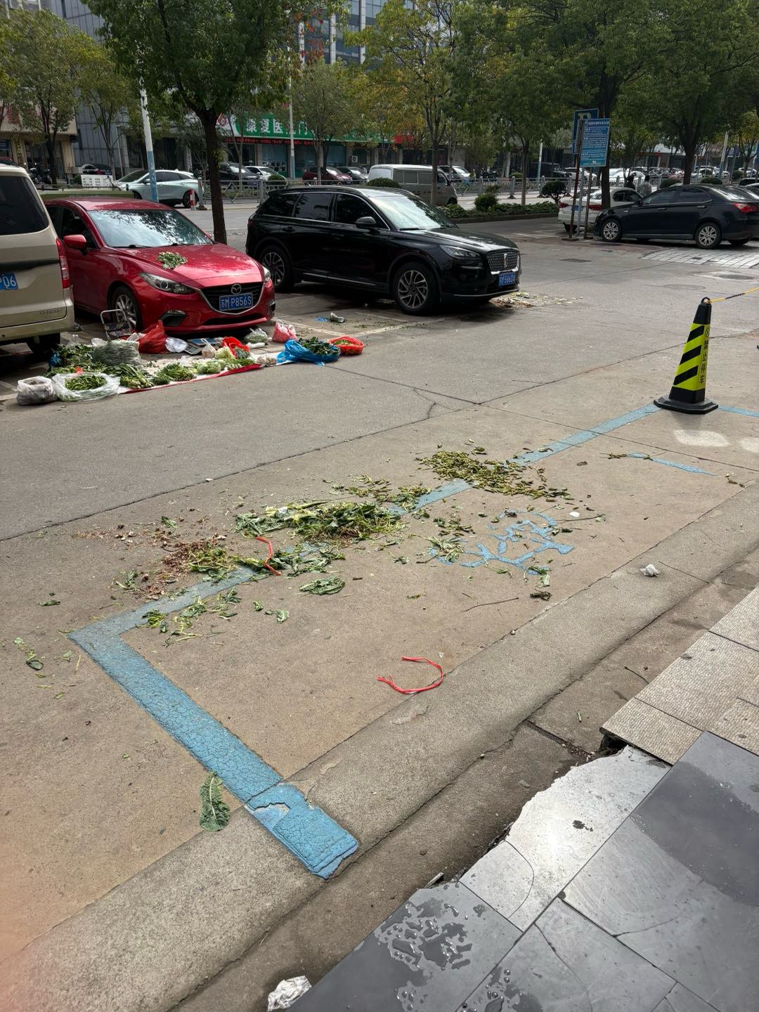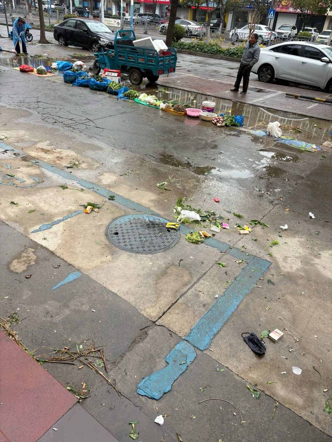 政府的不作为造就了这些占车位摆摊者们的变本加厉,重一开始的占一两个车位到现在的基本全占。再看看这留下的满地狼藉。最后还是辛苦了环卫工人,12345是反映了无数遍。可以说是一点用也没有。难道说是只有创建才有文明??
