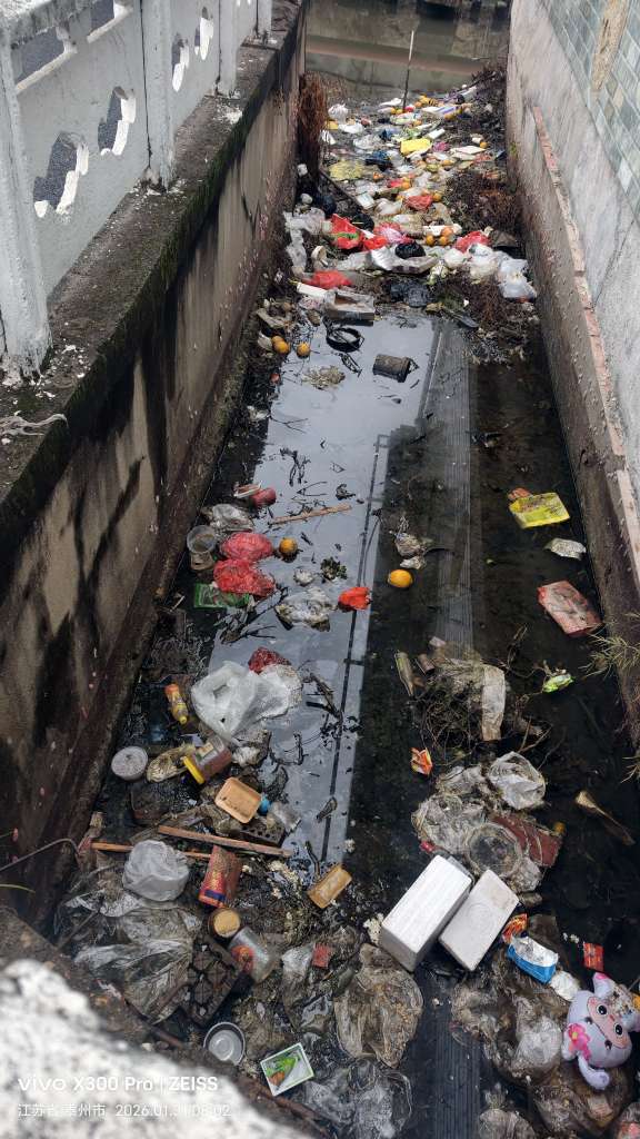 东兴镇扬帆华庭小区门口河道如此脏乱差!何时能给老百姓一个干净的生活环境!