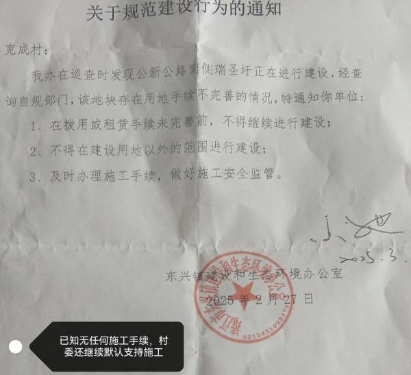 东兴镇政府、克城村委明知康复院无任何施工许可证和用地手续、违规违建,为什么不早发现早治疗,甚至克城村委欺瞒村民签订农耕地流转协议书,慌称建村委会办公楼!举报至镇政府相关部门、领导反映且提供了市国土资源部、住建局相关函文证明康复院未批先建等资料。堂堂人民镇政府难道真不知道在建康复院存在违建问题吗?居然回复举报人没立案权限、无执法权…