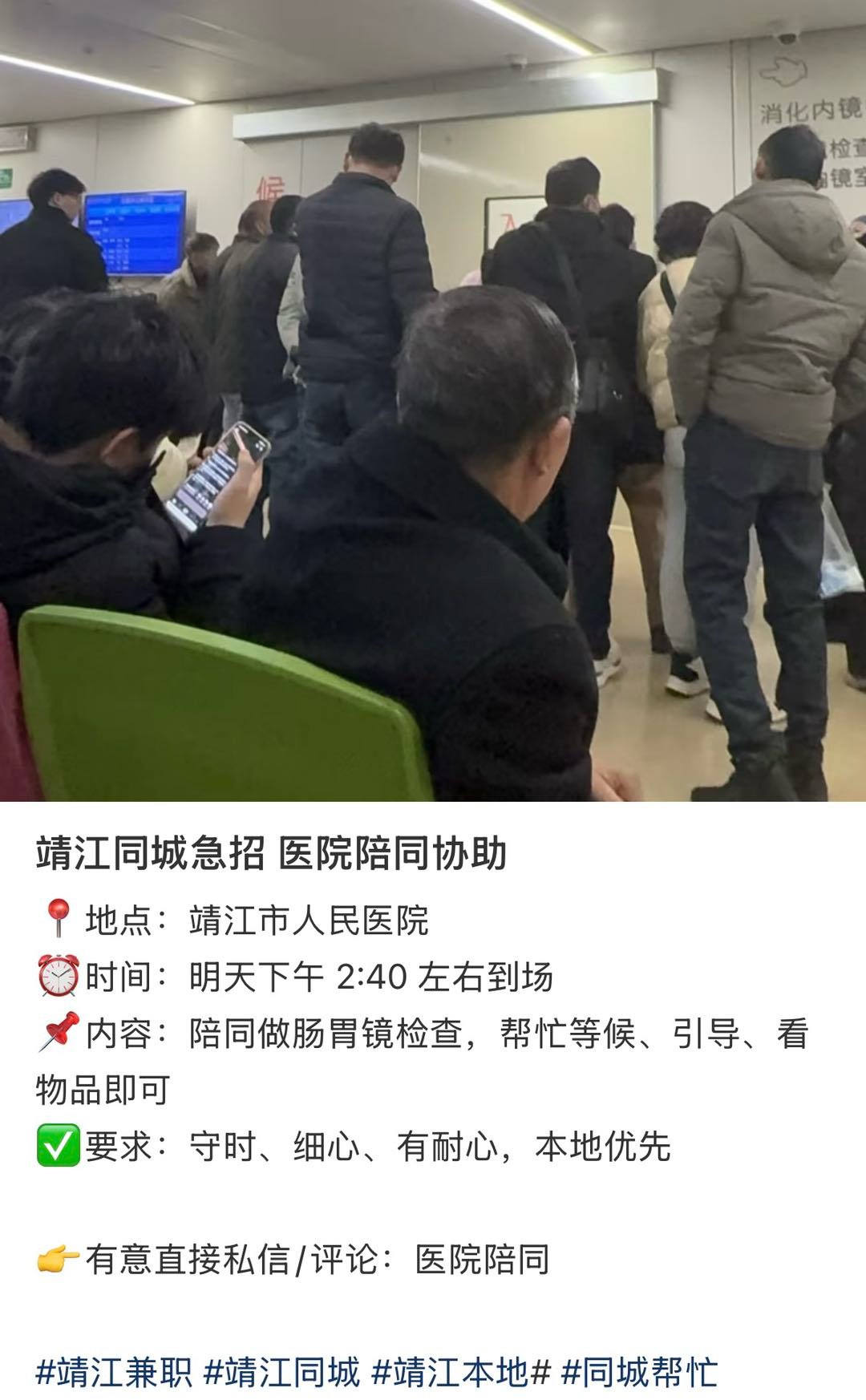 [话题] 雇人陪同看病这个新型职业在靖江也流行起来了吗