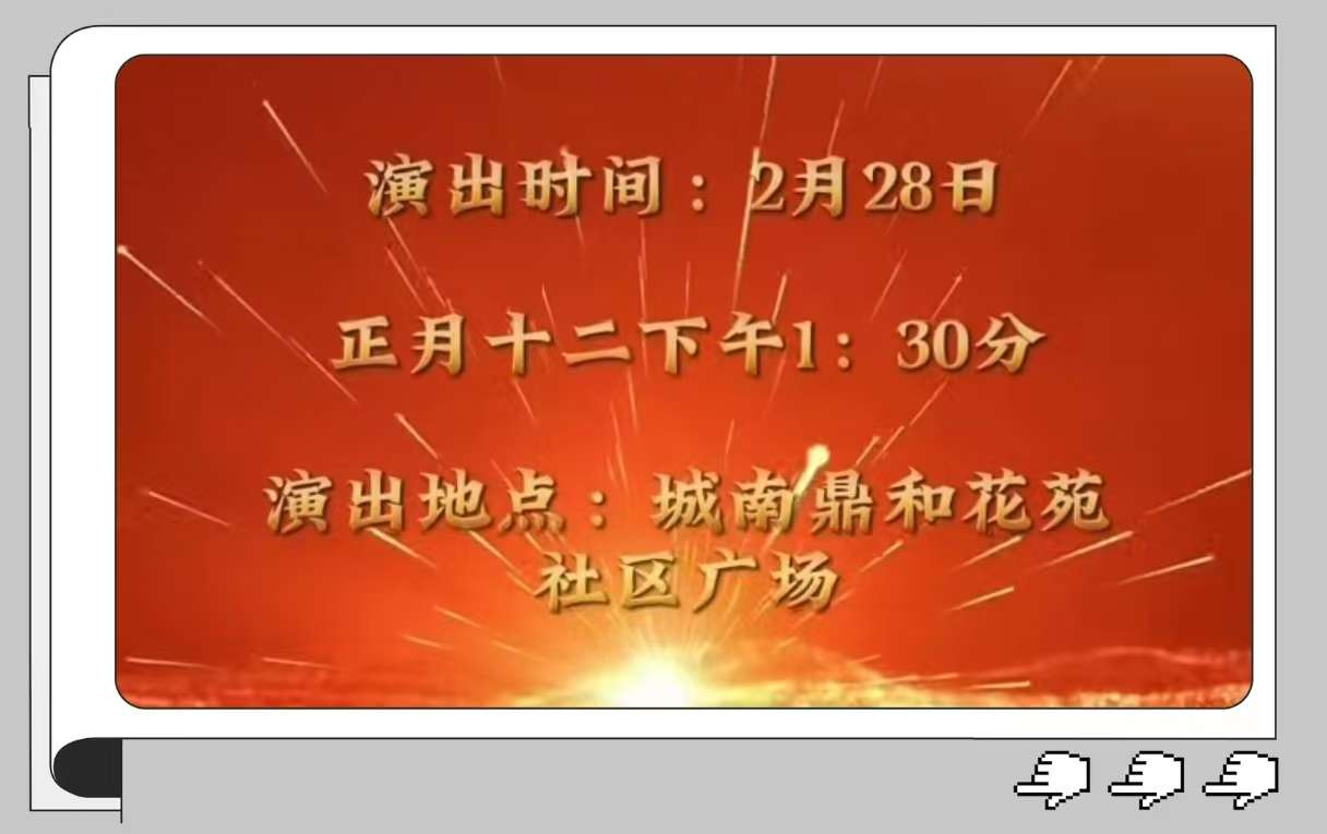 2026年2月28号,农历正月十二下午一点半,靖江市城南鼎和花苑小区文化广场,举行了热闹的喜庆祥和的文艺汇演!现场有歌有舞,戏曲小品,精彩纷呈!受到社区群众欢迎!