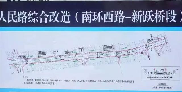 近期,随着工程的开展,人民路(南环路——新跃桥南侧)的改造方案终于浮出水面,此次改造还将延续20年前的4车道标准。
