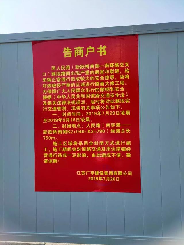 7月29日零时,人民路(南环路——新跃桥南侧)开始进行封闭施工。